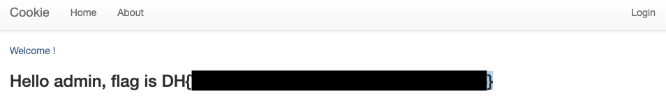 쿠키 값을 admin으로 변경 후 페이지를 확인해보니, admin으로 로그인 되었고 Flag가 페이지에 출력되었다.
