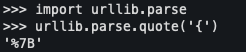 그 이유는 urllib.parse.quote 함수 때문이다. 이 함수는 URL 인코딩을 해주는 함수인데, 이 때 {}이 URL 인코딩되어 파이썬이 이를 인식을 못한 것이다.