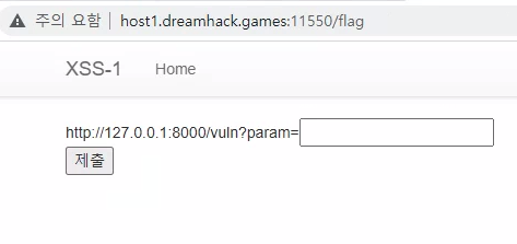 flag 페이지는 vuln(xss) page에 input 태그에 입력한 값을 param 파라미터에 넣어서 요청 보내는 페이지로 보인다.