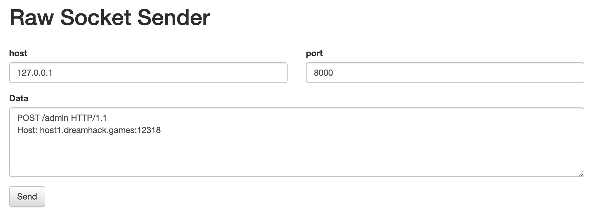 코드를 까본 결과 socket 페이지는 Post 메소드로 넘겨진 host, port, data를 가지고 Socket 연결을 하는 기능이다.