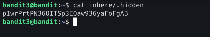 그래서 안에 뭐가 있는지 궁금하여 inhere 디렉토리도 확인하였다. 확인 한 결과 .hidden 파일이 있다는 것을 알 수 있었다.
