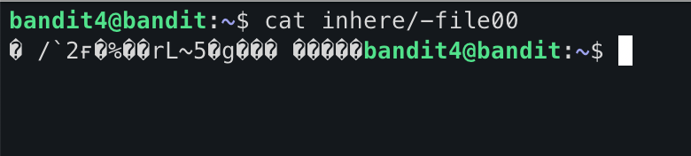 The password for the next level is stored in the only human-readable file in the inhere directory. Tip: if your terminal is messed up, try the “reset” command.