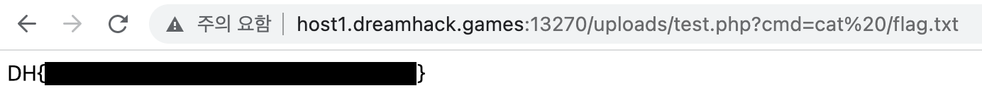 파일 업로드 취약점을 이용해 플래그를 획득하세요. 플래그는 /flag.txt에 있습니다.