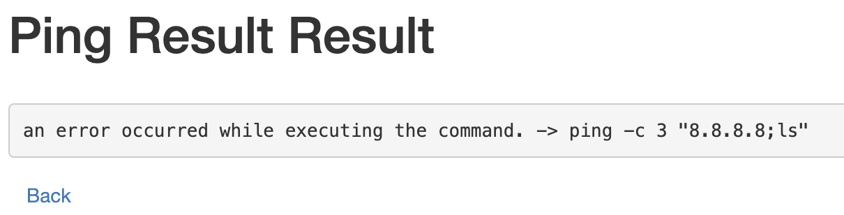 error가 발생되었다. 확인해보니, ping 기능은 ping -c 3 "input에 입력한 값"으로 되어있다.