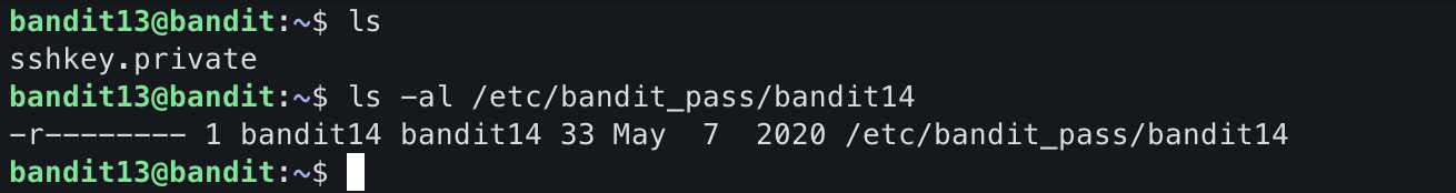 /etc/bandit_pass/bandit14 파일의 권한을 보니, 오직 소유자(bandit14)만 읽을 수 있었다.