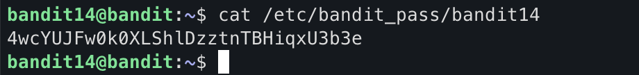 /etc/bandit_pass/bandit14 파일을 확인해보니, bandit14의 pw를 볼 수 있었다.