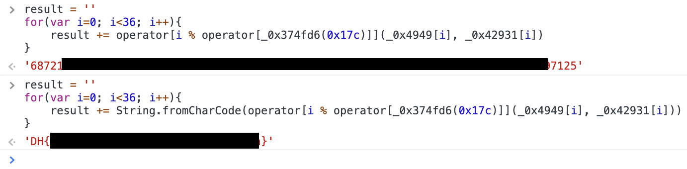 if (flag[_0x374fd6(0x176)](i) == operator[i % operator[_0x374fd6(0x17c)]](_0x4949[i], _0x42931[i])) {} else {