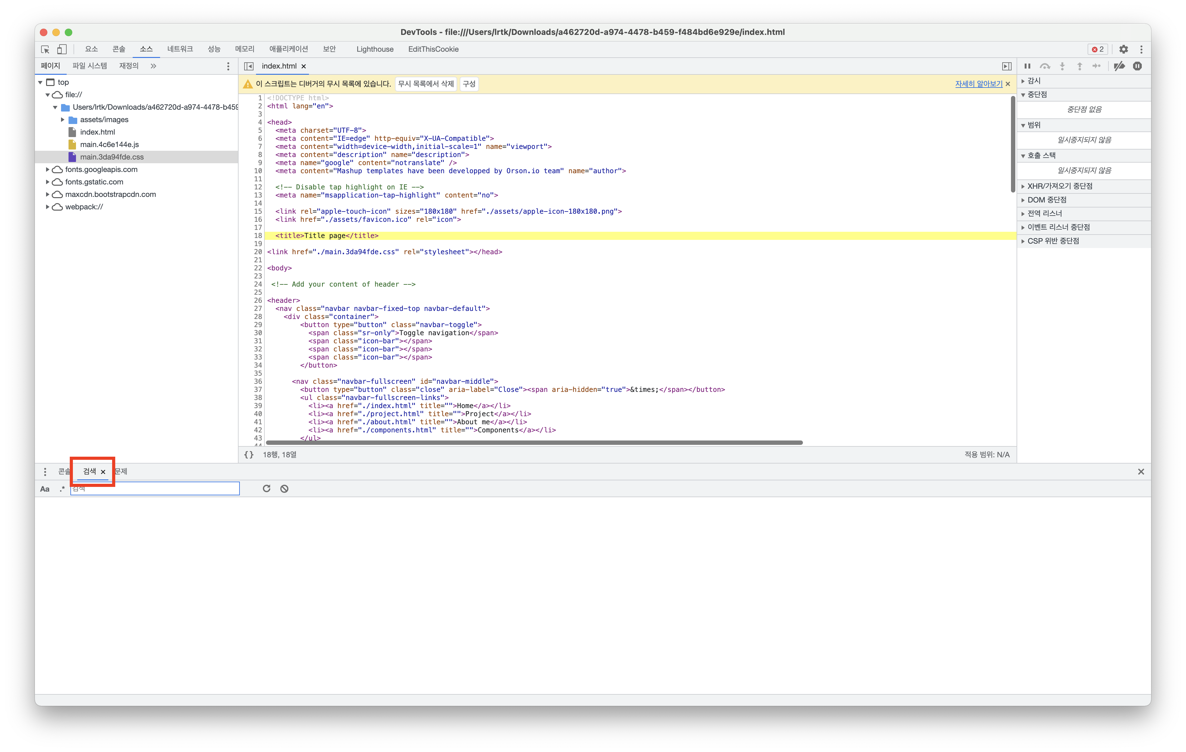 크롬에서도 같은 생각을 했는지, 개발자 도구엔 여러 파일에서 한번에 검색 가능한 기능을 제공하고 있다.