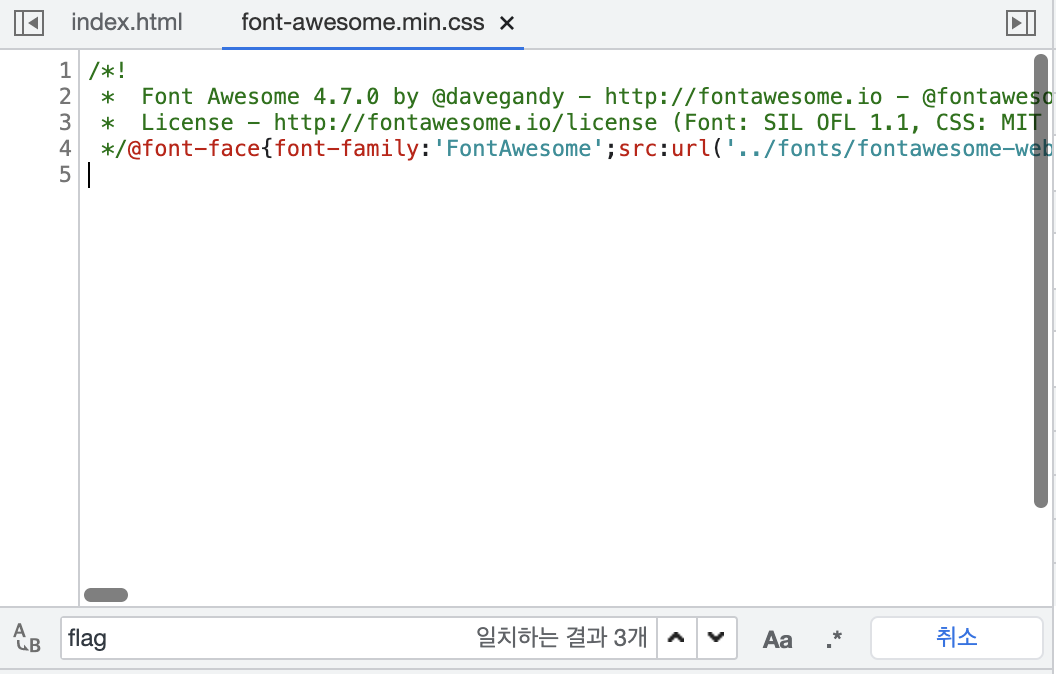 나는 일단 flag를 검색해봤는데, css 파일에서 flag를 발견하였다고 한다.