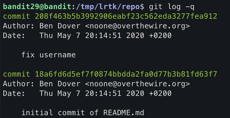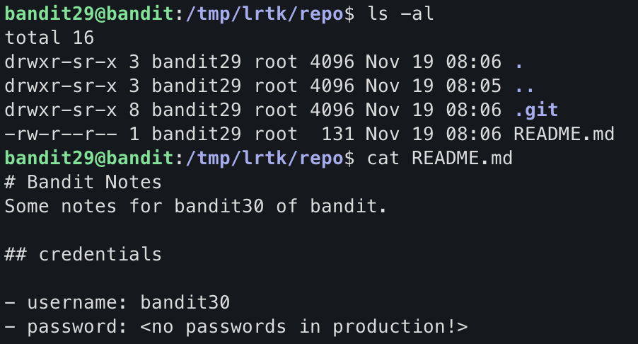 username이 bandit29로 되어있었는데, bandit30으로 변경한 거 빼고는 변경 사항이 없다...
