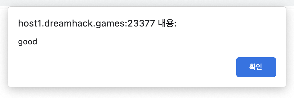 Post 메소드로 값을 전달하고 있다. 그리고 제출 버튼을 클릭하면 good이라는 alert창이 뜨는 것을 볼 수 있었다.