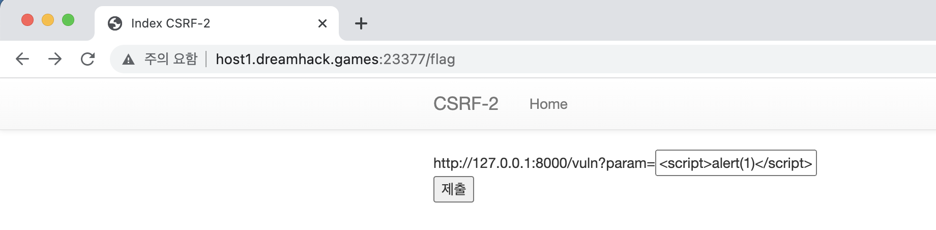 저번 문제처럼 입력값을 넣으면 셀레리움을 이용하여 vuln 페이지에 전달하는 페이지인 것 같다.