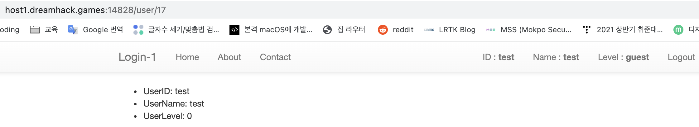 예시로 1번 User인 Apple의 UserLevel은 1로 되어있으며 test의 UserLevel은 0으로 되어있는 것을 UserLevel 1이 admin이라는 것을 충분히 추측할 수 있다.