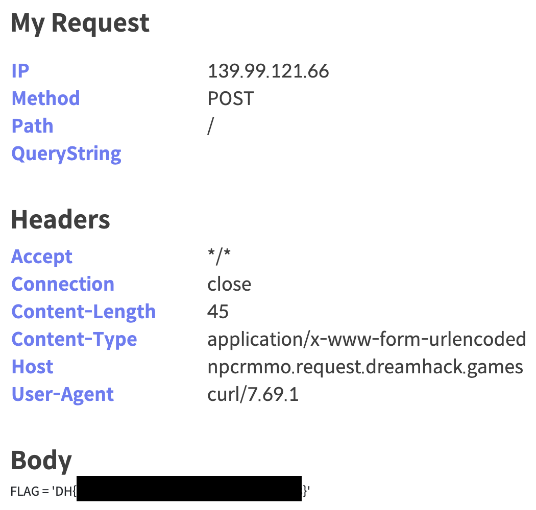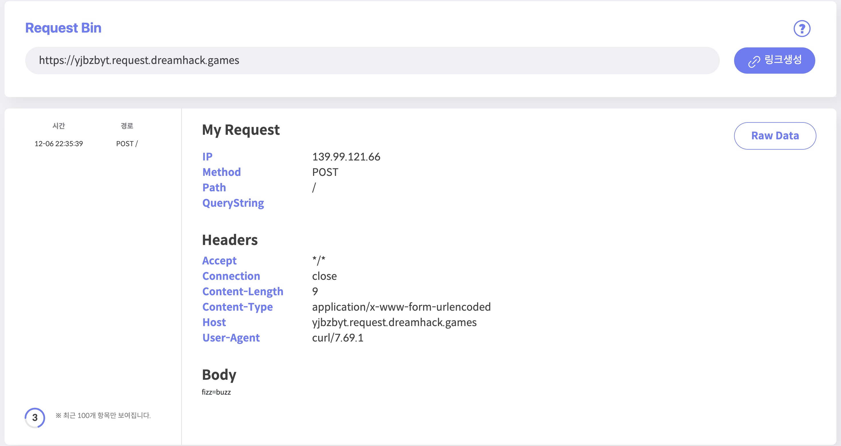 이상하게 값이 전달이 안 되고 있다. 그래서 알아본 결과 드림핵에서 제공하는 Reguest bin 기능이 있었다.