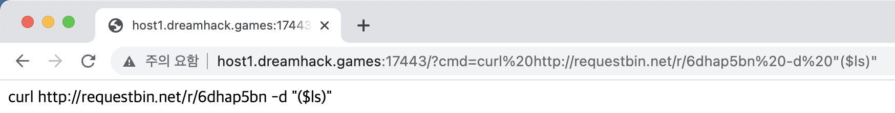 그래서 나는 "서버 단에서 명령어가 실행되고 결과 값을 출력을 안하고 있구나"라는 생각을 하였다. 이로 인해 "그럼 내가 입력한 명령은 실행되니, nc나 curl를 이용하여 내가 만든 서버에 값을 보내면 되지 않을까?"라는 방법을 생각하였다.