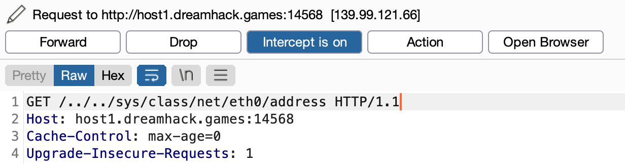 서버의 MAC 주소를 찾기위해 /sys/class/net/eth0/address 파일을 요청하였다.