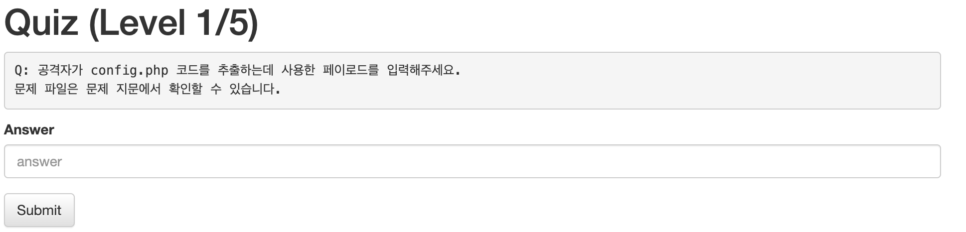이번 질문은 config.php 코드를 추출하는데 사용한 페이로드를 찾으란다.