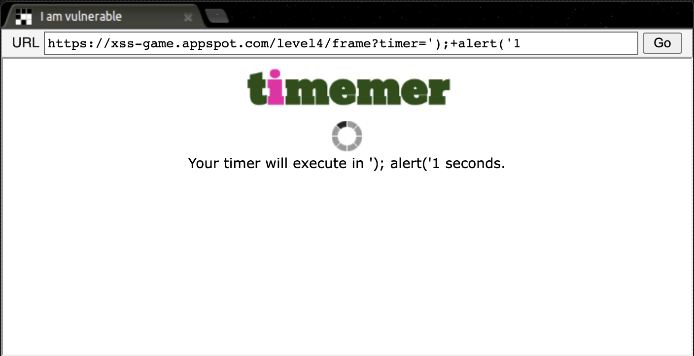 이것을 이용하여 '); alert('1'를 삽입하여 onload="startTimer(''); alert('1');"으로 만들면 내 맘대로 alert창을 띄울 수 있지 않을까?라는 생각을 하였다.